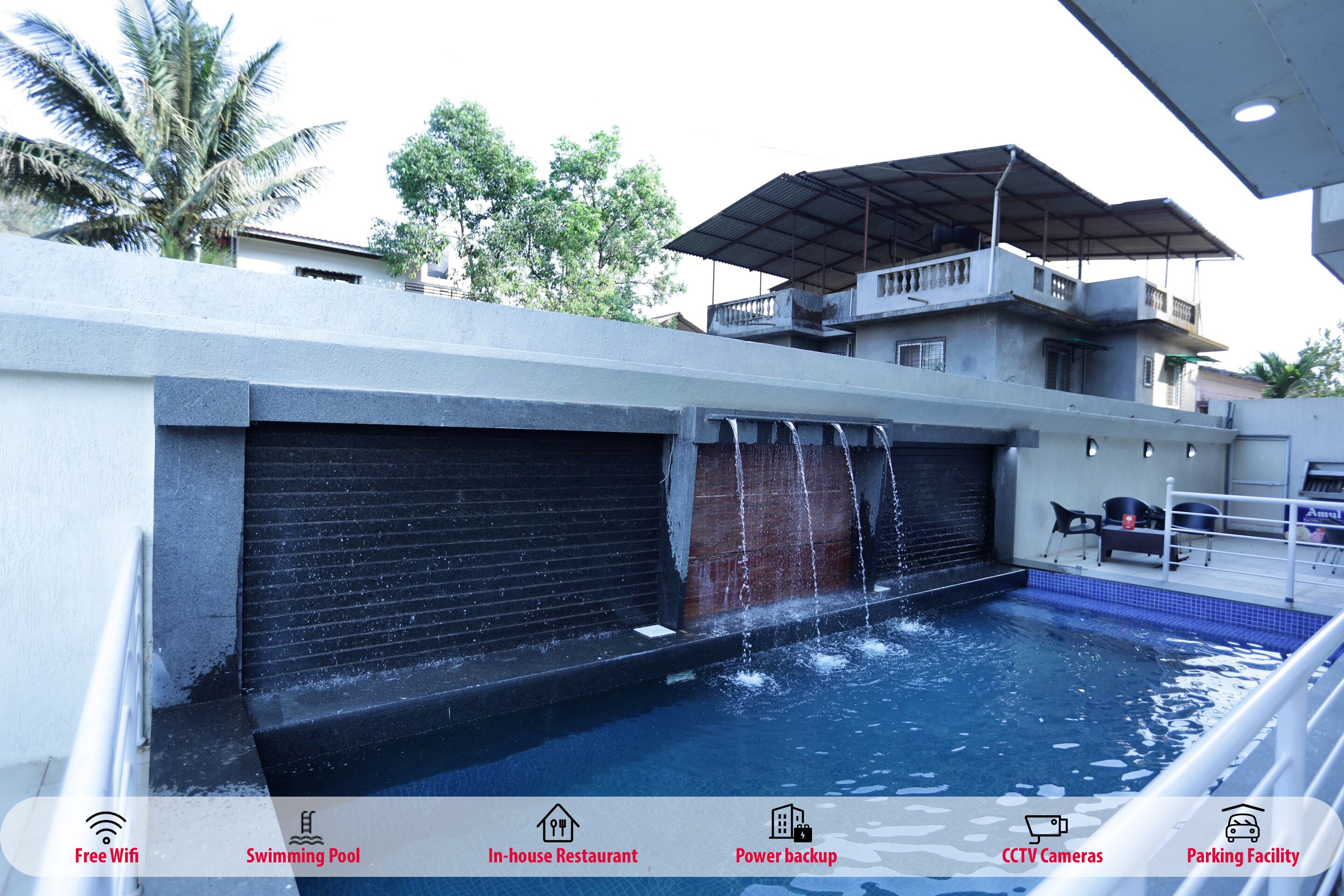 Hotel In Lonavala With Pool / It features an outdoor pool with water slides, indoor tennis courts and a rooftop terrace.